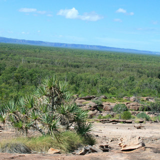 After a sleepless night in the swag listening to the billions of mosquitoes and rain through the night, we were up early and headed towards Cooinda. We stopped on our way to complete a large number of walks - Nourlangie where lots of Aboriginal art work and an Aboriginal shelter can be experienced. Here the view of the Kakadu escarpment and savannah woodlands can be experienced. Nawurlandja Lookout which was a moderate climb up the sandstone rocks to see the escarpment looking out towards Arnhem land was breathtaking. It was a view uninterrupted and all you could see was green treetops and a few billabongs. We also did the 6km round trip to Gubara Pools - very disappointing as the pools were only a pool and no swimming due to recent croc sighting.
